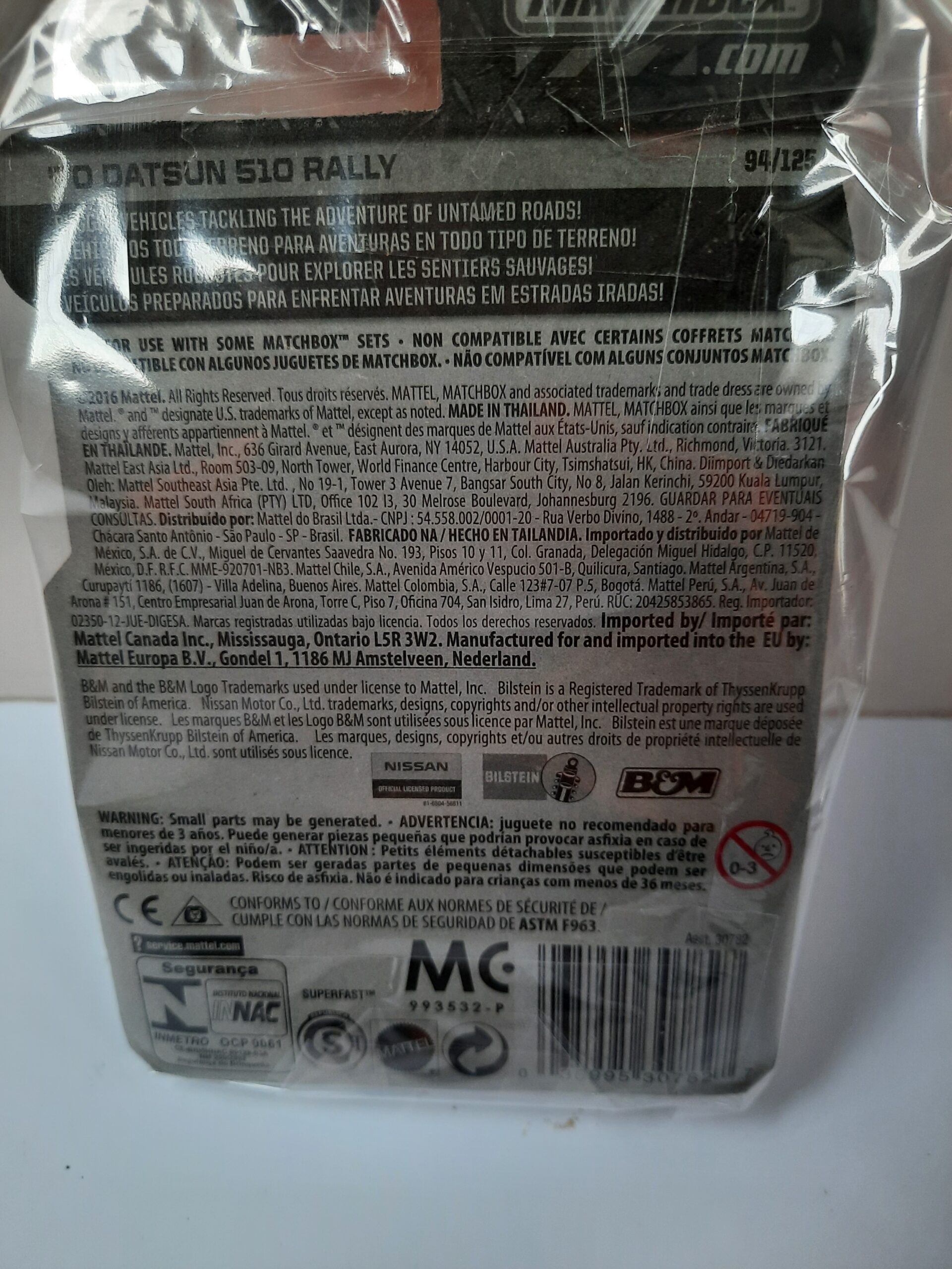 Matchbox 2016 70 Datsun 510 Rally. With so much commitment time and effort have been invested to create this very fine diecast car, it has been crafted with extreme attention to detail, generously well balanced and sensationally presented, it is brand new and it has never been opened.